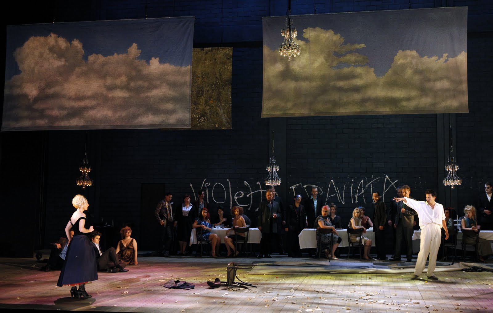 ヴィオレッタとあったアルフレードは復縁を迫るが、ジェルモンとの約束で真意を言えないヴィオレッタはドゥフォール男爵を愛していると心変わりを装います。アルフレードはそれに激高、借りは返したと札束をヴィオレッタに投げつける。自分の真意が伝わらず、みんなの面前で侮辱された彼女は気を失う。