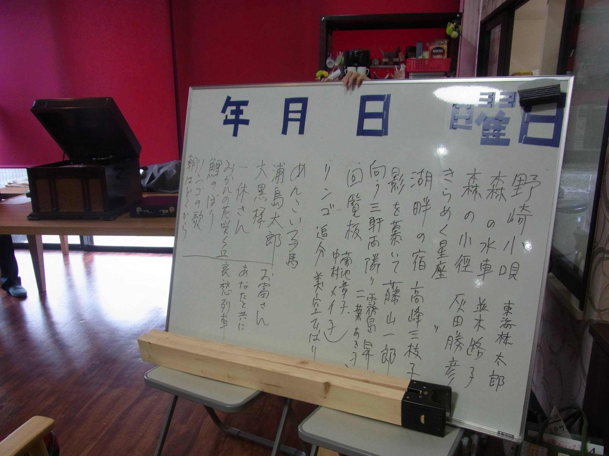 ]]>地域で蓄音器でSPレコードを聴くことを楽しんでもらおうと会場に隣接する小学校の生徒、その保護者を招くことにしました。それに先駆けて写真は先のデイサービスセンターで蓄音器コンサートを行った時ですが、この時は20曲ほどを用意してリクエストしていただいた曲から聴いていく形式でした。