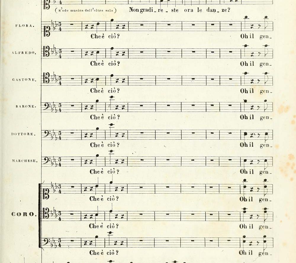彼女の中でアルフレードとの恋愛を肯定するもう一人の自分との葛藤に、千々に乱れる心を表す、コロラトゥーラ唱法を駆使した華やかな曲で第一幕は幕切れとなる。