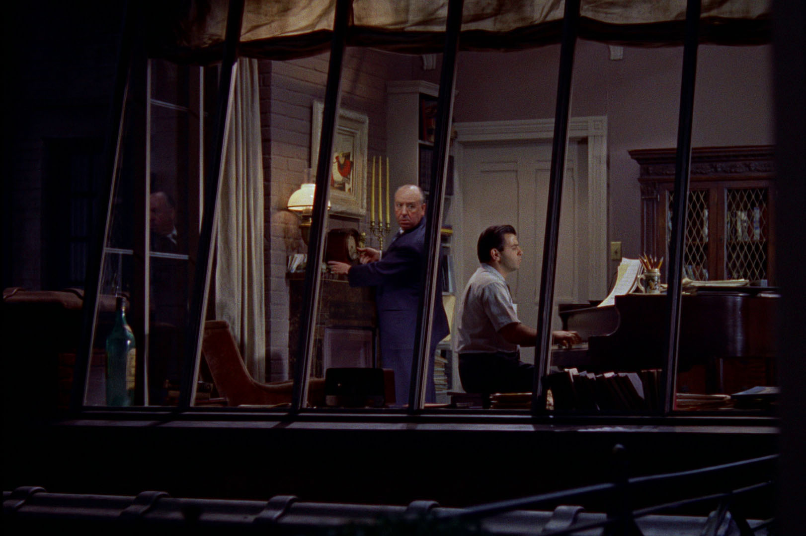 で、ヒッチコックの映画では監督である彼の登場しているシーンが楽しみです。映画『裏窓』で彼は、アパートの上層に住む作曲家がピアノを弾いている隣で時計のネジを巻いています。ネジを巻くという行為に、わたしはシンボリックなものを感じるのです。